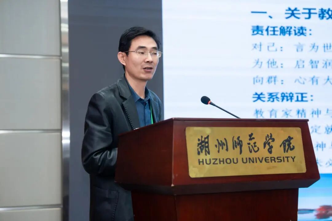 湖州师范学院教育学院(教师教育学院)执行院长李茂森宣读征文获奖名单并为其颁奖,由浙江师范大学硕士研究生吴梦莹和西北师范大学博士研究生欧阳小宇作为获奖代表发言。